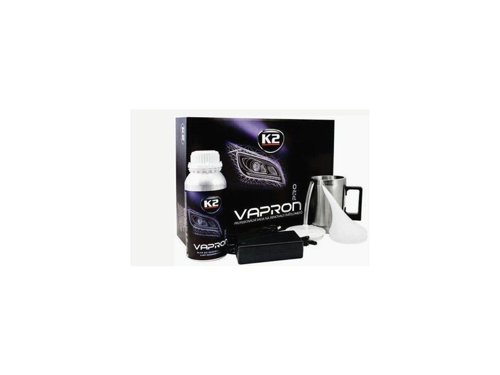 K2 Vapron je revoluční metoda regenerace poškozených světlometů bez nutnosti jejich demontáže. Souprava je založena na rekonstrukci průhledné polykarbonátové vrstvy (nejprůhlednějšího plastu použitého k výrobě krytů světlometů) nanesením nového tekutého polykarbonátového povlaku a přestavbou struktury stínítka lampy. K2 Vapron je profesionální sada pro regeneraci a ochranu poškozených světel, známá jako „čajová konvice“ nebo „kouzelná konvice“. Je ideální pro obnovu poškozených (matných, zažloutlých) světlometů bez ohledu na věk vozidla a stupeň poškození světel. Regenerace světlometů pomocí sady K2 Vapron je nejúčinnější a nejspolehlivější metodou renovace povrchu světlometu.