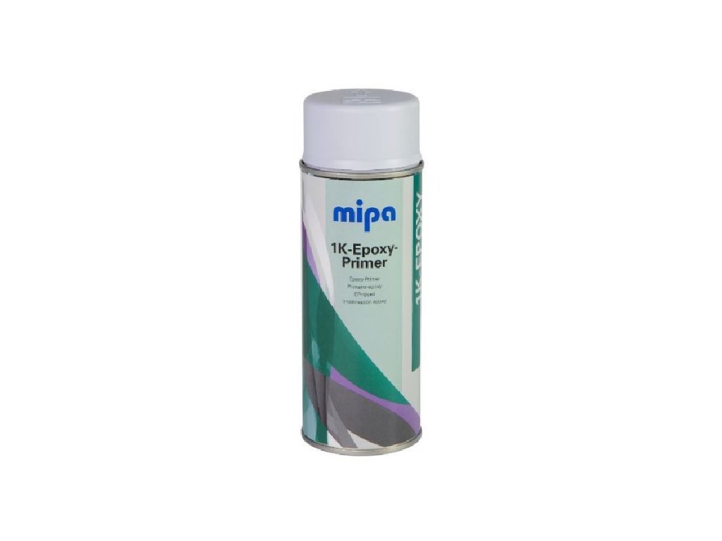 Mipa 1K-Epoxy-Primer Spray - Jednokomponentní, bezchromátový, rychleschnoucí přilnavací základ s vynikající antikorozní ochranou, vysokou plnivostí a s vysokou izolací proti prostupující vhlkosti. Vhodný jak na staré podklady tak na železo, ocel, zinek a hliník. Snadné následné přebroušení, velmi jemný nástřik díky speciální trysce. Vhodný na dronbé opravy a rozstřiky. Nepoužívat na termoplastické materiály. Lze přelakovat všemi dostupnými 1K, 2K a WBS barvami. Sprej je vybaven nastavitelnou tryskou pro široký rozsah aplikací.