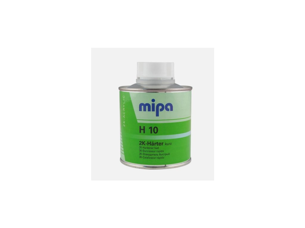 Mipa 2K- tužidlo H10 pro mnohostranné použití. Tužidlo je vyrobeno na bázi isokyanatu a je odolné proti UV záření. Je určeno pro tužení Mipa 2K vrchních laků, 2K základů, 2K plničů a 2K transparentních laků. Daný poměr tužení určuje technický list jednotlivého produktu.