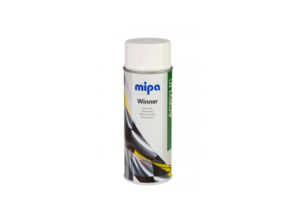 Mipa Winner Spray - Winner Acryl lak je antikorozní, odolný proti povětrnostním vlivům a vyblednutí, rychle schnoucí, s vysokou kryvostí, dobrou přilnavostí, dobrou plnivostí, vysoce vydatný. Je vhodný pro rychlé a snadné lakování automobilů, motocyklů, strojů, jiných vozidel, nebo kovových povrchů. Možnost použití na vytvrzené a rozbroušené staré nátěry, dokonale proschlé Mipa 1K a 2K barvy a laky a výplňové tmely.
