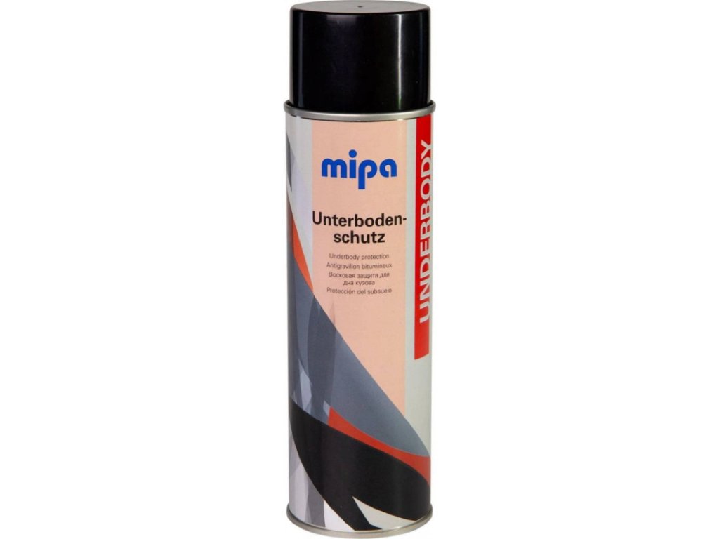 Mipa Unterbodenschutz-Spray na bázi bitumenu je určen pro dlouhodobou ochranu podvozků, podběhů,prahů apod. proti korozi. Poskytuje dlouhodobou ochranu proti vodě, soli, korozi na rozích a hranách. Vhodnýpro opravy. Oděruodolný, trvanlivá pružnost, antikorozní, nepřelakovatelný, vynikající odhlučňovací účinek,odolnost proti chladu a teplu. Neteče, nekape.